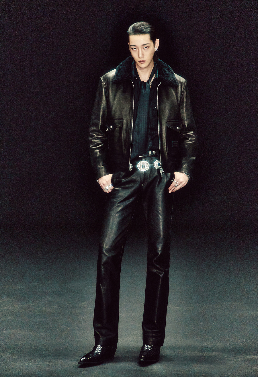칼라는 웨스턴 무드에 맞도록 보다 엣지있는 패턴으로 제작하였으며, 요크의 형태는 중세 기사가 착용하는 투구에서 착안하였다.