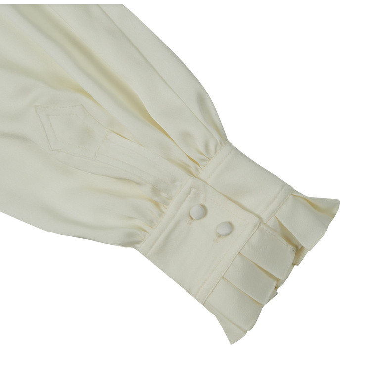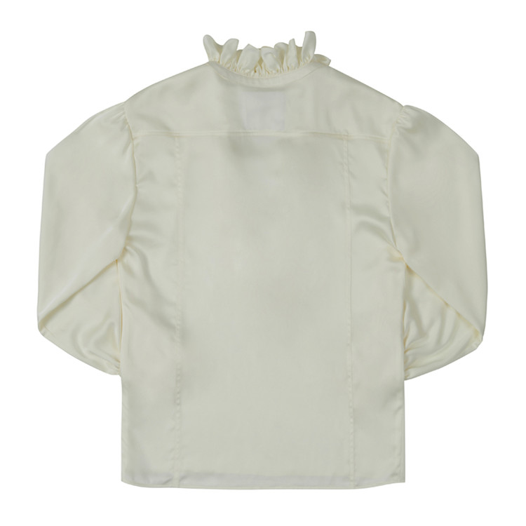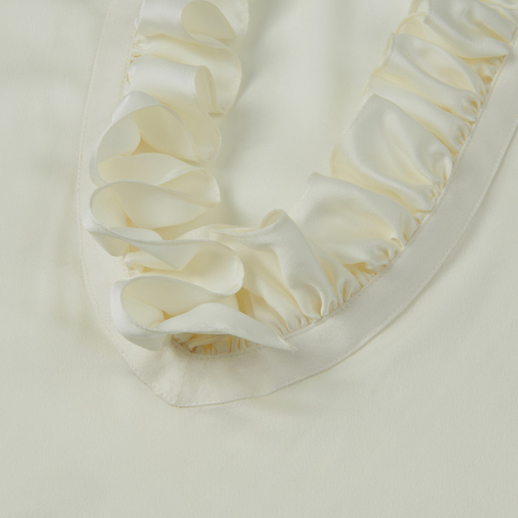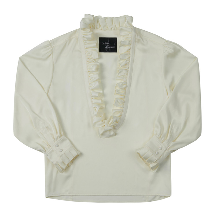 깊게 내려오는 브이넥 디자인의 프릴 셔츠.